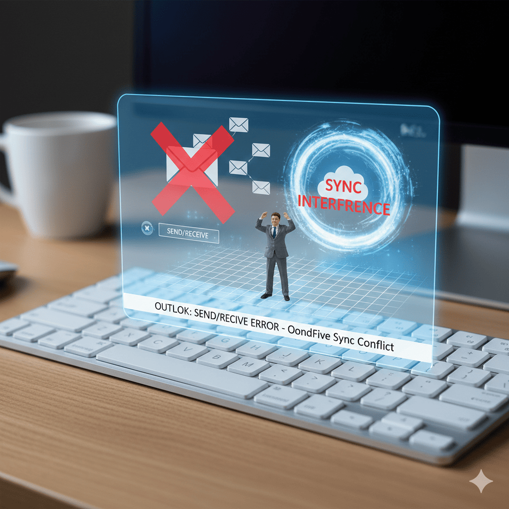 - 衝突(ロック): Outlookが書き込もうとした瞬間にOneDriveが同期のためにファイルをロックしてしまい、「ファイルが使用中です」といった内部競合が発生。結果として送受信プロセスが止まってしまいます。