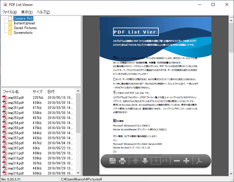 このプログラムは複数のPDFファイルを閲覧する際に「開く」の動作やエクスプローラを使った「ダブルクリック」または「ドラック&ドロップ」での操作が煩わしいと思っている方向けの閲覧ソフトです。